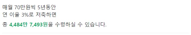 70만원씩 5년 동안 받는 연금액은 4,200만원입니다.