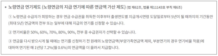 최대 5년 늦게 받는 노령연금을 연기수령 이라고 합니다.