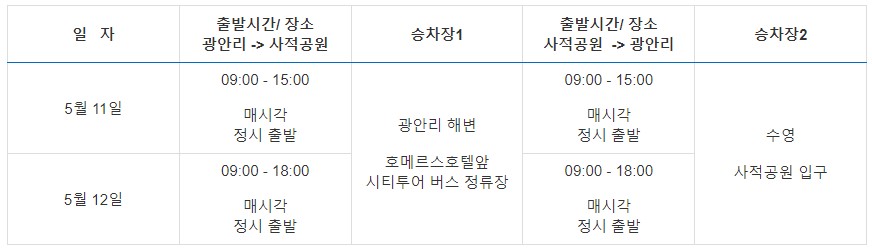 // 셔틀버스 운행일정표