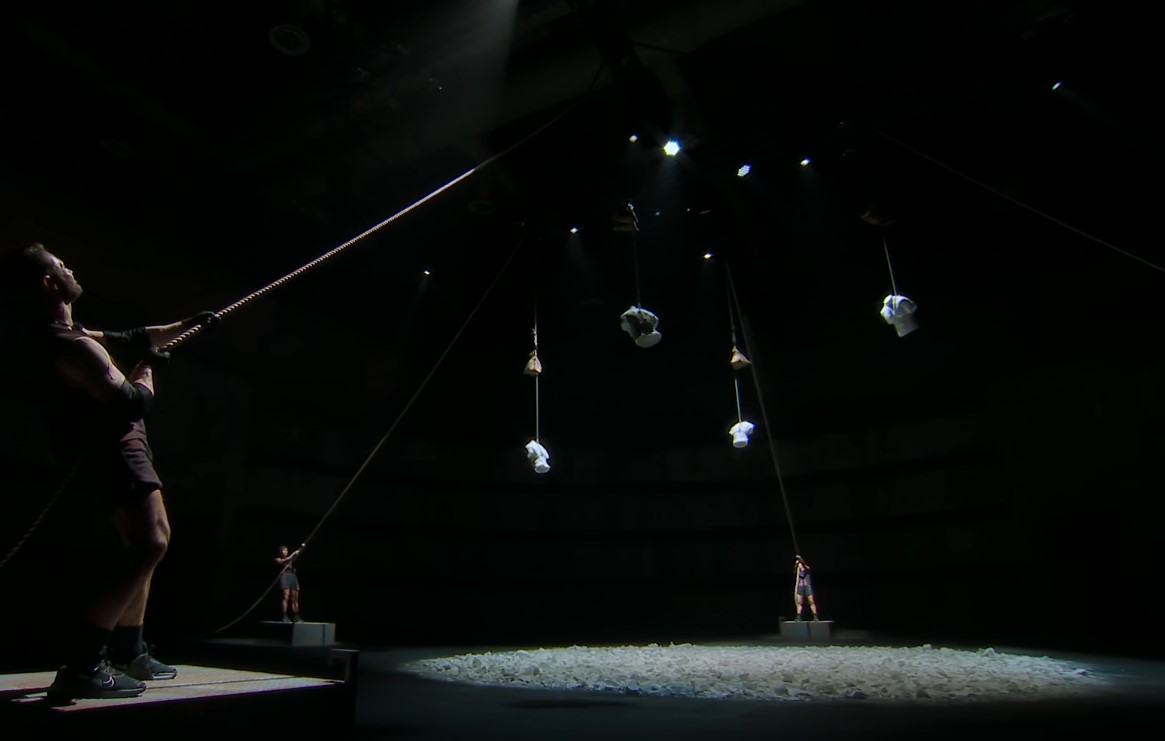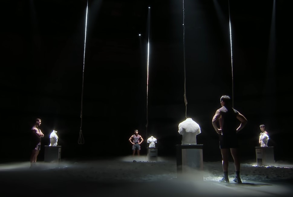 파이널 퀘스트 1라운드는 줄에 매달린 자신의 토르소를 붙잡고 끝까지 버텨야 하는 게임입니다. 자신의 토르소를 놓친 참가자는 그 즉시 탈락!