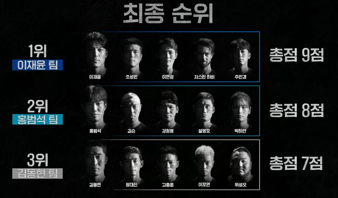 김동현 팀 VS 이재윤 팀 VS 홍범석 팀 대결 경기 결과