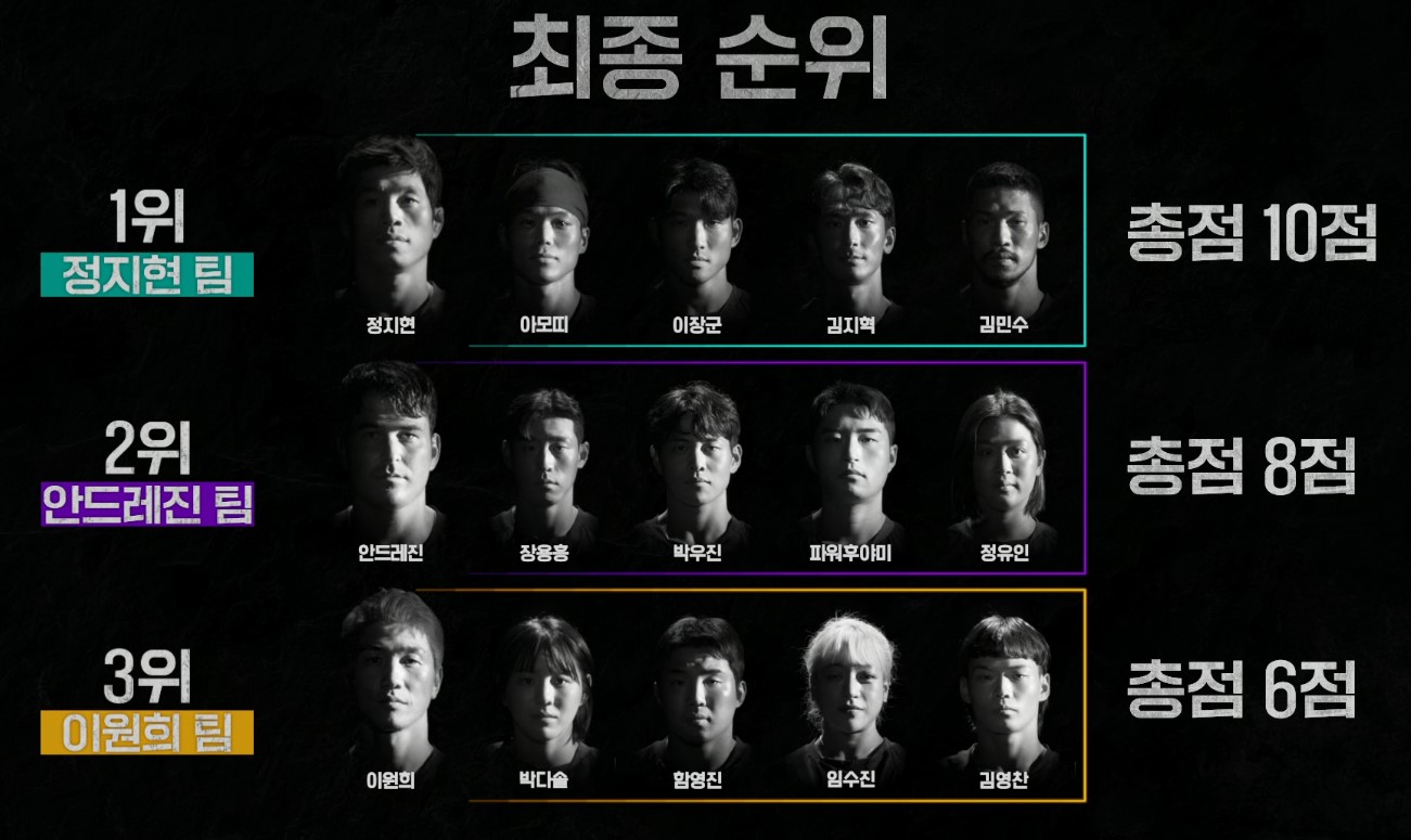 안드레진 팀 VS 이원희 팀 VS 정지현 팀 대결 경기 결과