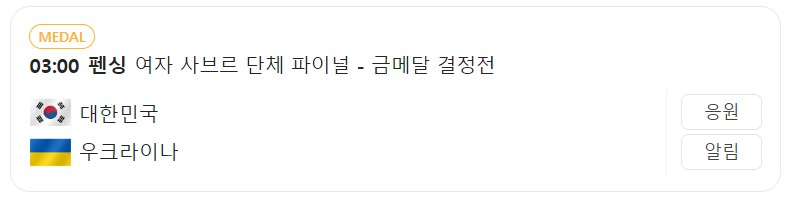 한국 펜싱 여자 사브르 대표팀이 2024 파리 올림픽 단체전에서 사상 첫 결승티켓을 따냈습니다. 일단 은메달은 확보했고 이왕이면 첫 금메달 꼭 성공하시길 바랍니다. 아자아자!!