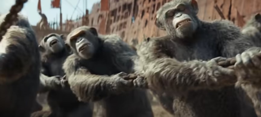 시저의 후예인 라카는 노아에게 유인원의 조상인 시저의 이야기를 해줍니다. 둘은 함께 프록시무스를 찾아 떠나는데, 그 둘 앞에 인간 소녀가 나타납니다. 라카는 배고픈 소녀에게 호의를 건네고, 노아는 경계하지만 셋이 함께하는 여정에서 인간 무리를 발견합니다.